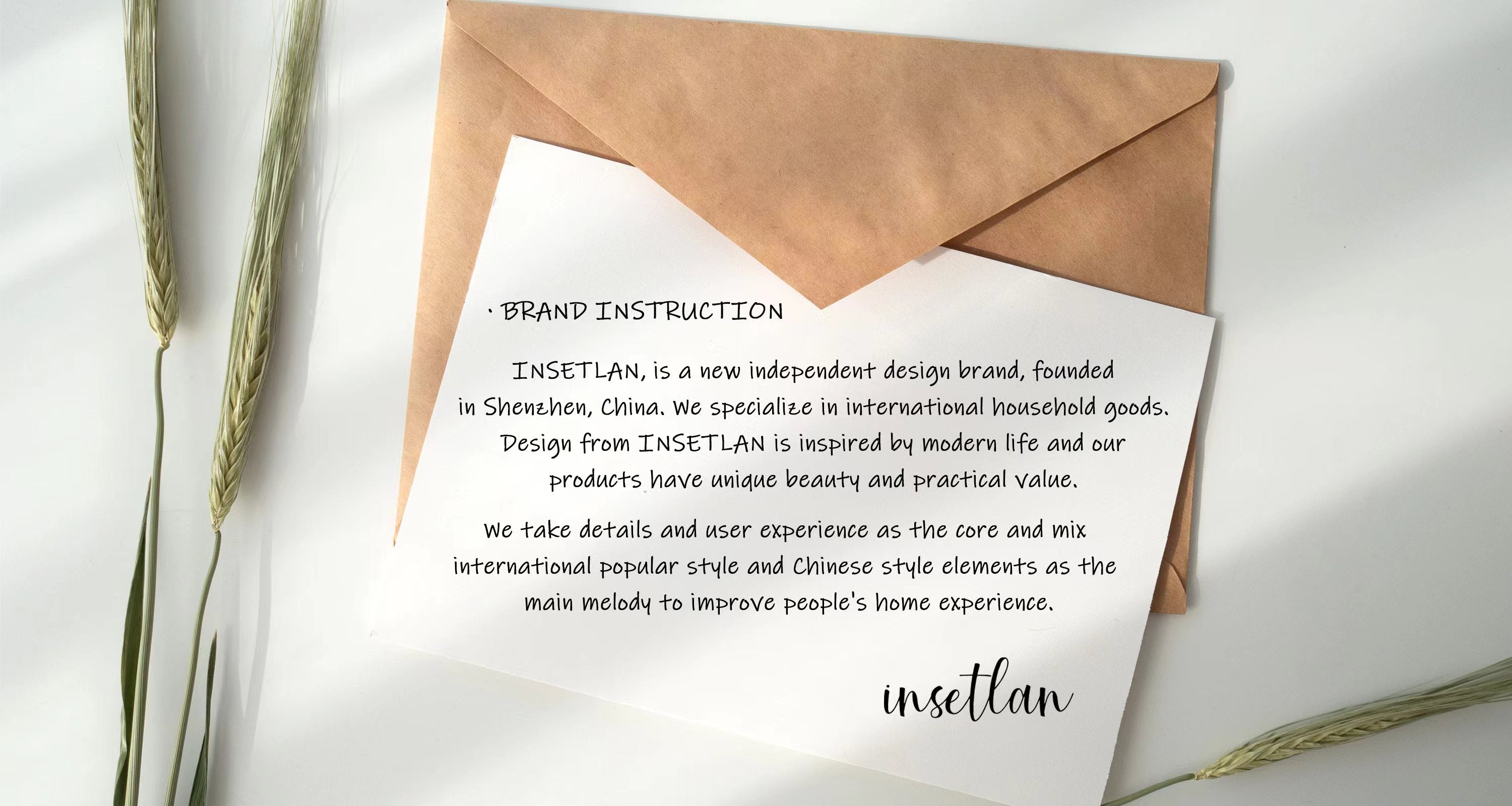 INSETLAN is a new independent design brand, founded in Shenzhen, China. We specialize in international household goods. Design from INSETLAN is inspired by modern life and our products have unique beauty and practical value. We take details and user experience as the core and mix international popular style and Chinese style elements as the main melody to improve people's home experience.